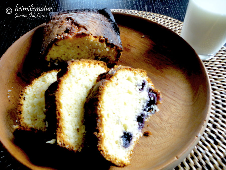 Bláberjum er hrært samanvið með sleif og deigið er sett í formkökumót og bakað í 50-70 mínútur á 185°C á miðhillu í ofni. Sykurinn og sítrónusafinn er hitað yfir vægum hita þar til sykurinn leysist upp. Þegar kakan kemur úr ofni er prjóni stungið í hana á nokkrum stöðum og safanum hellt yfir kökuna