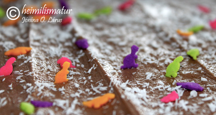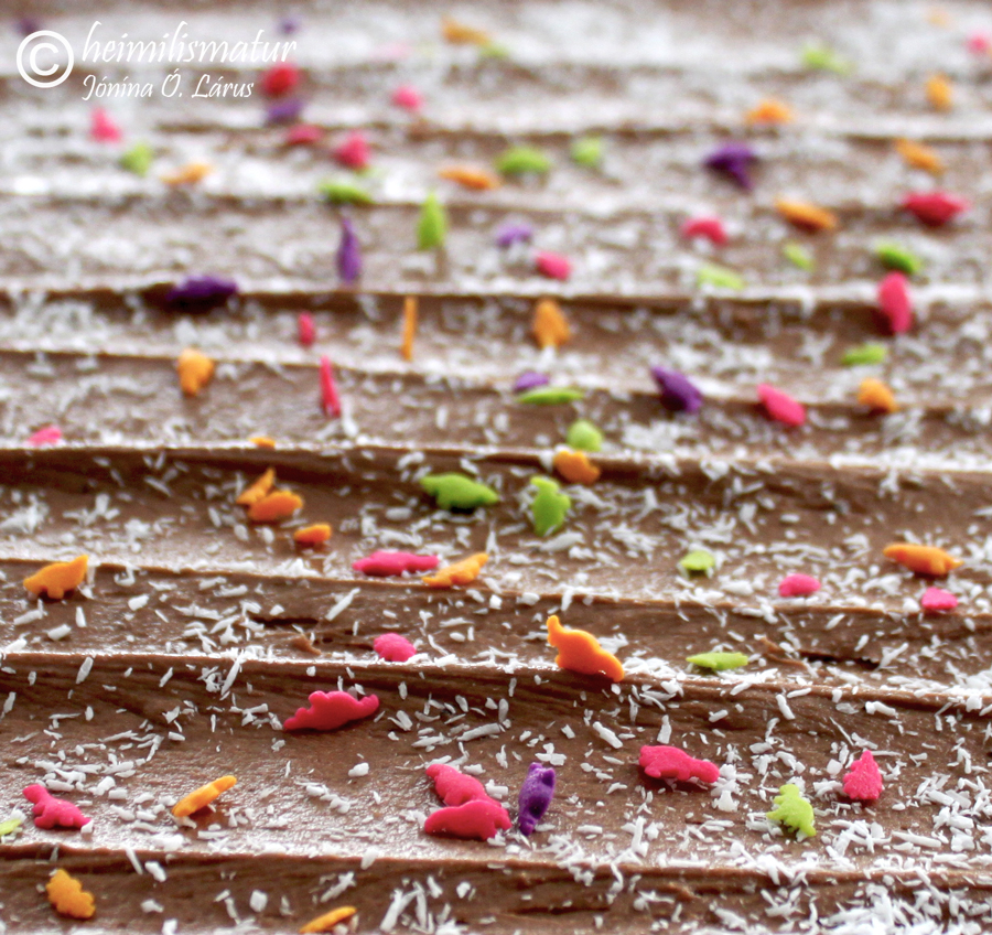 Allavega þá var ákveðið að baka skúffuköku og skreyta hana með Isaedlu (risaeðla) skrauti sem við keyptum sérstaklega í Allt í köku