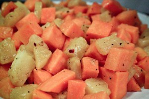 Steiktar sætar kartöflur með ferskum ananas og chilli