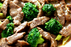 Stir-fry með brokkolí og kjöti.